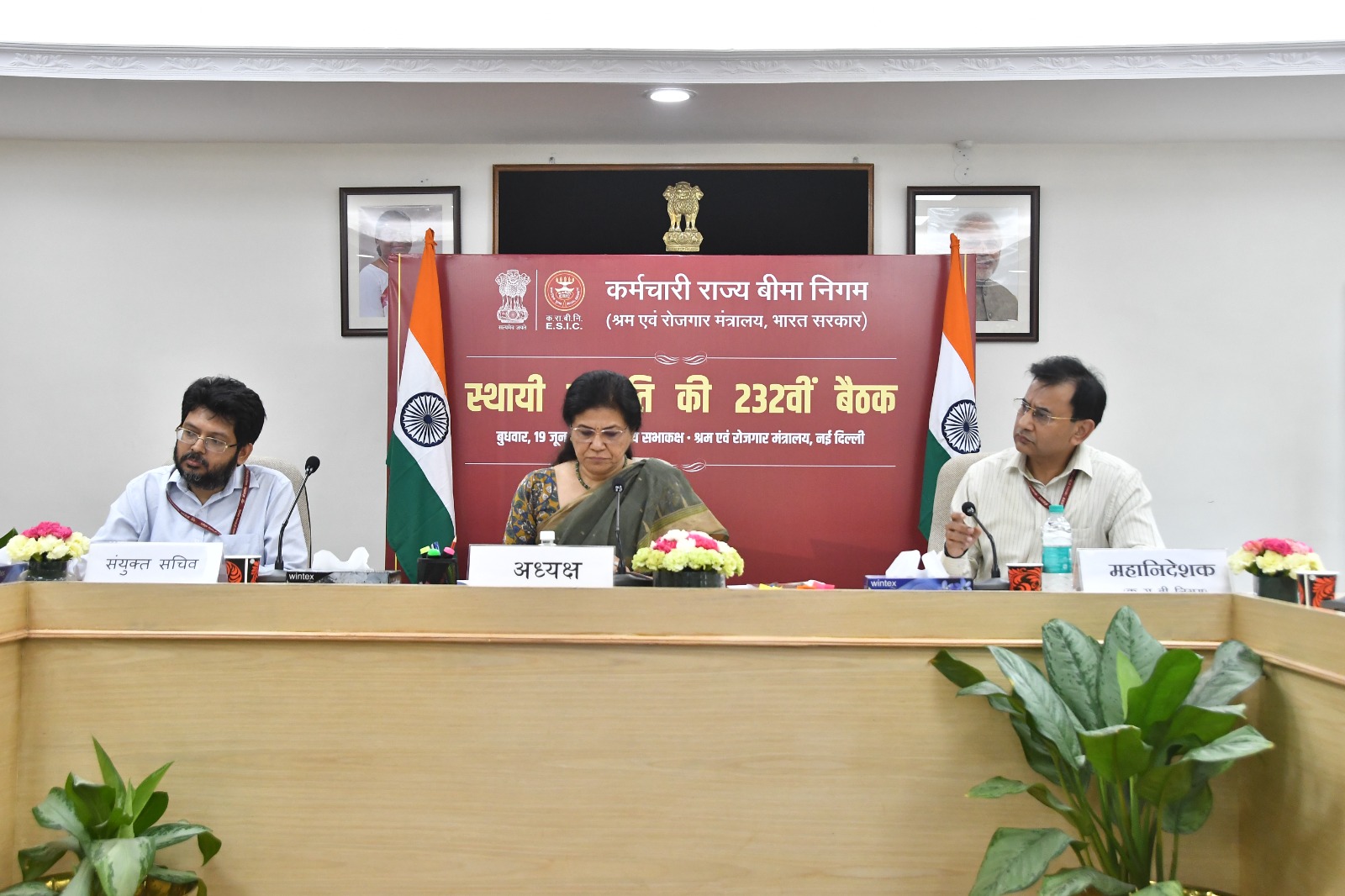 सुश्री सुमिता डावरा, सचिव, श्रम एवं रोजगार मंत्रालय, भारत सरकार की अध्यक्षता में कर्मचारी राज्य बीमा निगम की स्थायी समिति की 232 वीं बैठक